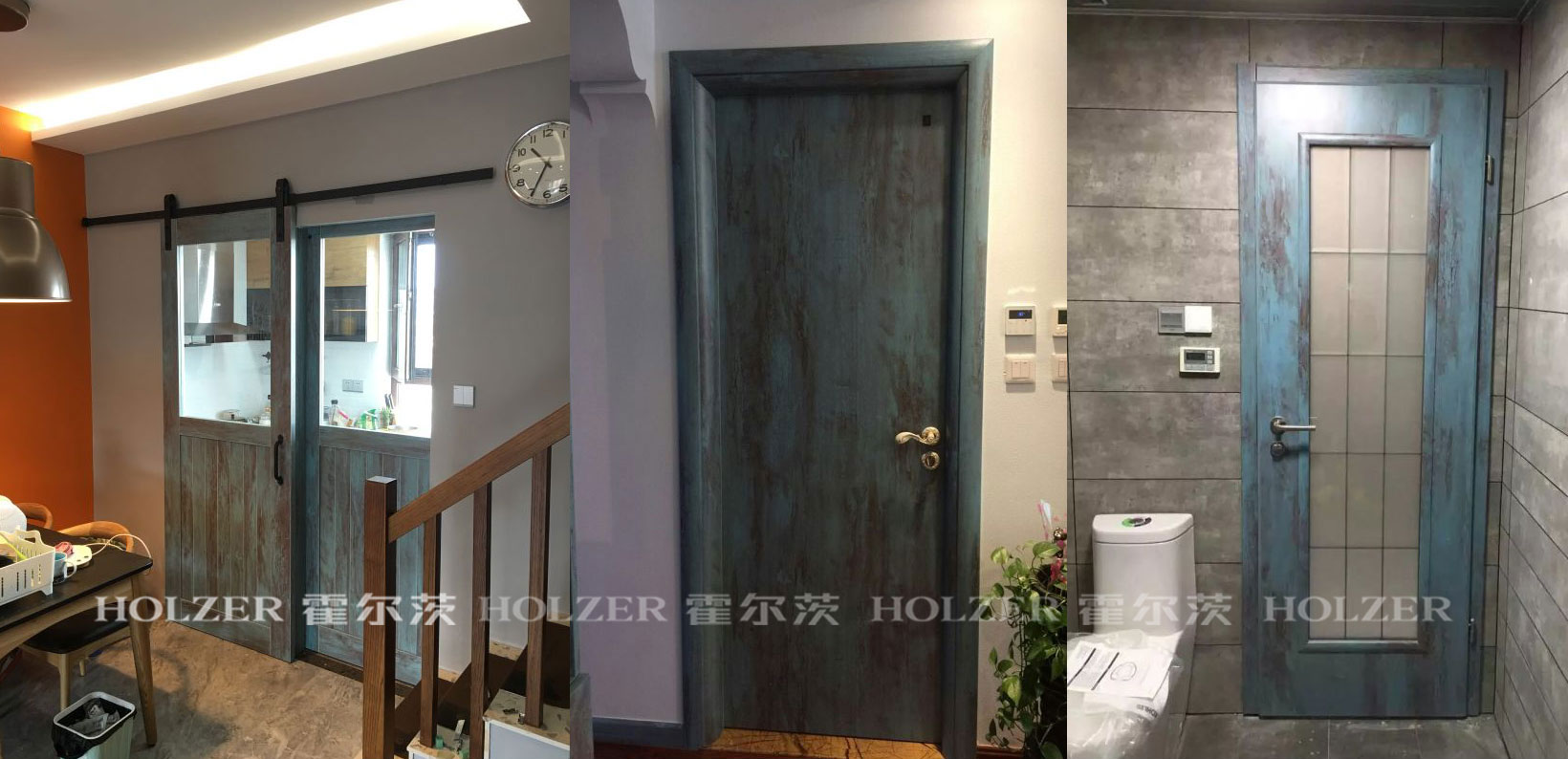 蓝色沙漠谷仓门、卧室门、卫生间门