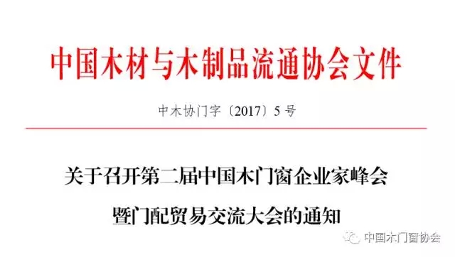 当前,我国正处于新一轮技术革命和产业变革的关键时期,作为家居建材领域中的一员,木门窗行业形成了前所未有的发展新格局。2017年环保风暴重压下,面对迁厂、关停、整顿、原材料价格上涨等诸多问题,木门企业优胜劣汰的现象越发明显。为进一步提升行业视野,延伸优势产业链渠道,加强与国际同行的交流合作,经我会研究决定,于2017年10月29日-31日在安徽巢湖召开以“突围求变,智赢未来”为主题的“第二届中国木门窗企业家峰会暨门配贸易交流大会”。现将会议有关事项通知如下:
